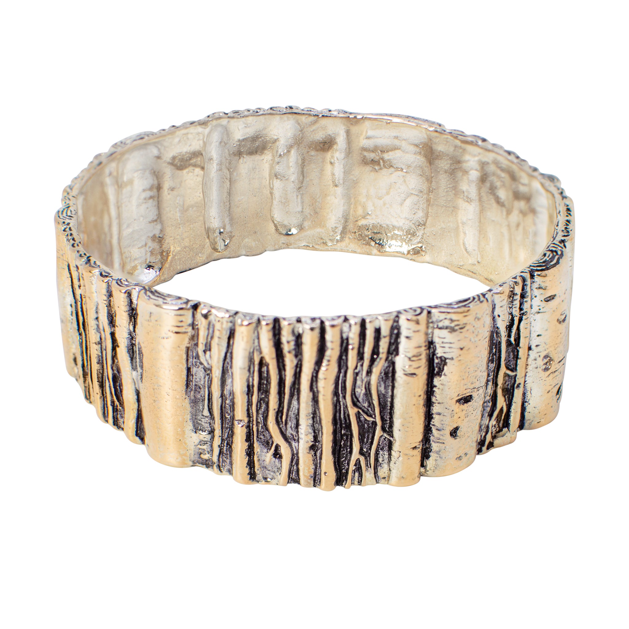 Our love for Aspens is no secret, so we have added the hand-carved Aspen Bangle to our mix. Each piece is cast in bronze, then flash-plated with sterling silver, and antiqued to give the bark that icy-white color with all the knots and groves we all love.