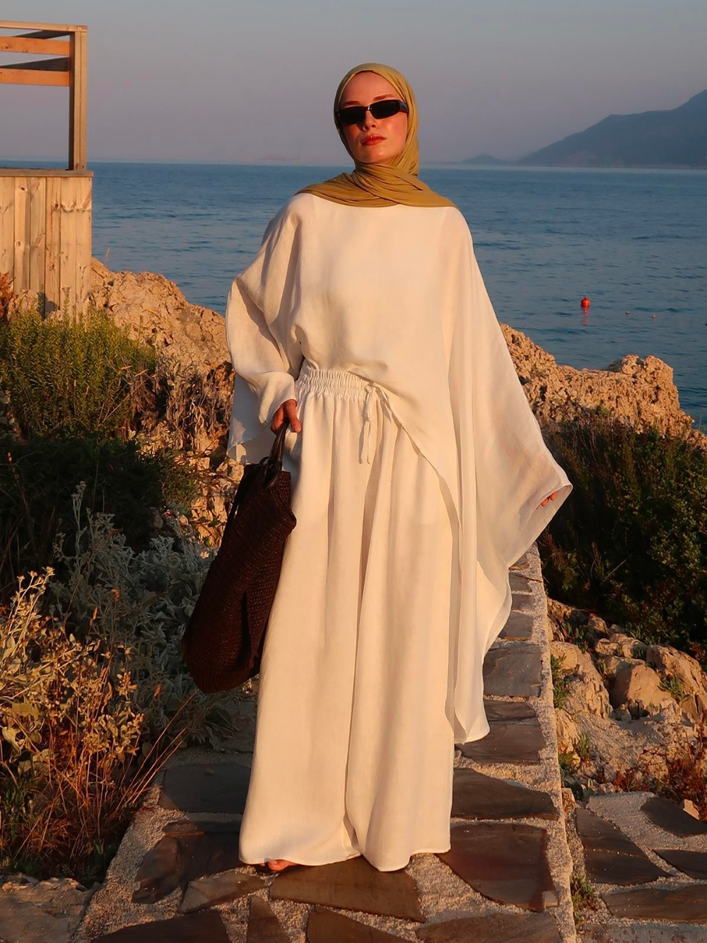 Made from 100% linen, this airy cape top features a striking asymmetrical cut with one side longer for a modern, effortless look. Lightweight, breathable, and easy to style.