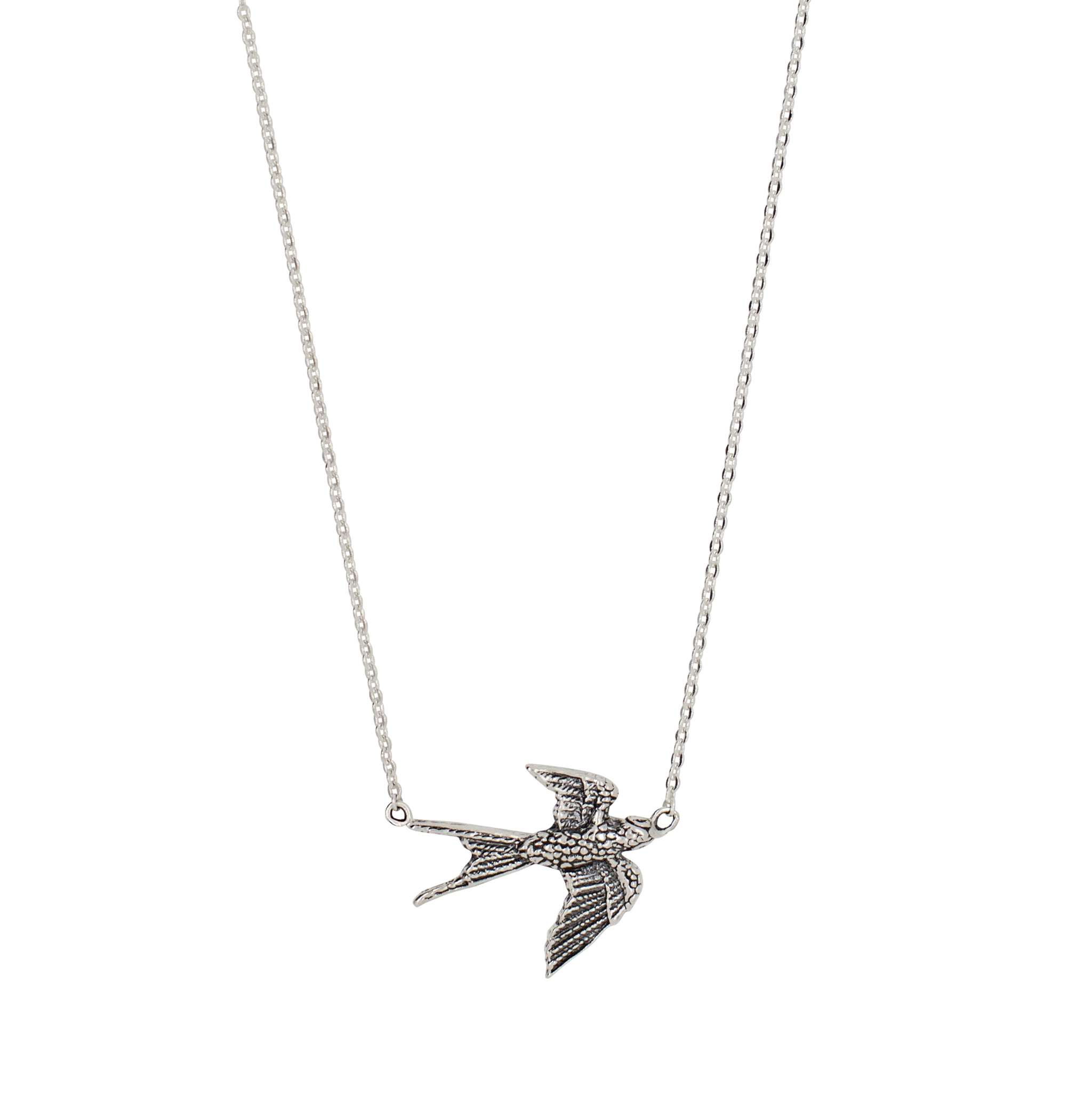 A soaring barn swallow pendant is affixed to a delicate sterling silver cable chain to create the Barn Swallow Necklace. Each piece is intricately carved and cast to give these agile birds all their glorious details. This necklace is the perfect tribute to their cheery morning chirps, evening air shows, and regular reminders that life is messy and beautiful.