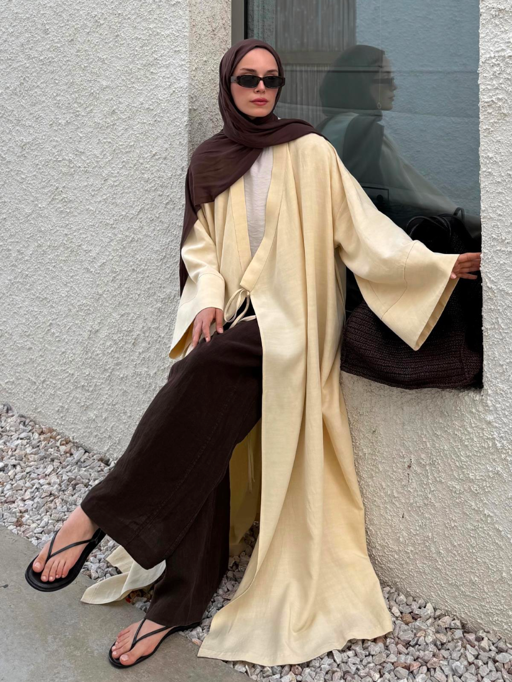 This front-tie kimono offers a clean, refined silhouette. Made from lightweight fabric to keep you cool in summer, it features an adjustable front tie for a personalised fit and a subtle back slit for ease of movement. Simple, versatile, and effortlessly stylish.