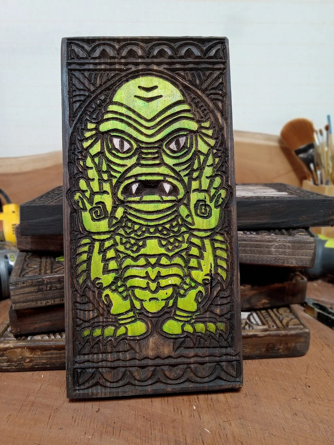 Whether you're a fan of classic monster movies, a collector of unique memorabilia, or seeking a standout piece for your horror-themed collection, these Monsters Tiki art is a must-have addition.