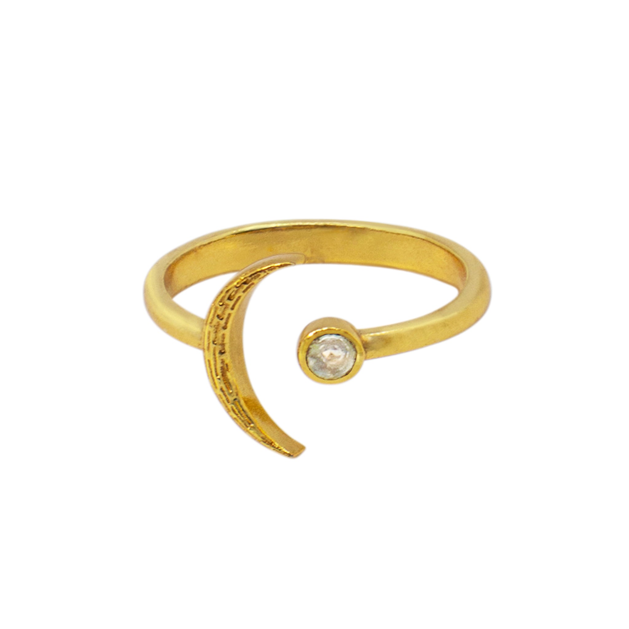 Crescent Moon Ring in Moonstone & Gold