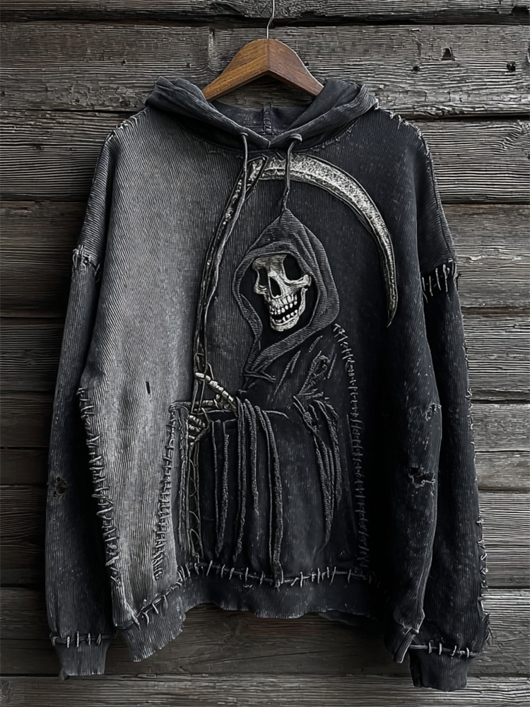 Halloween Grim Reaper Contrast Gradient Washed Hoodie