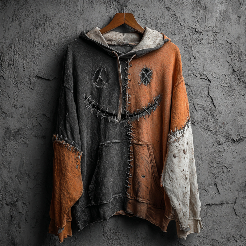 Halloween Stitched Face Colorblock Patchwork Hoodie