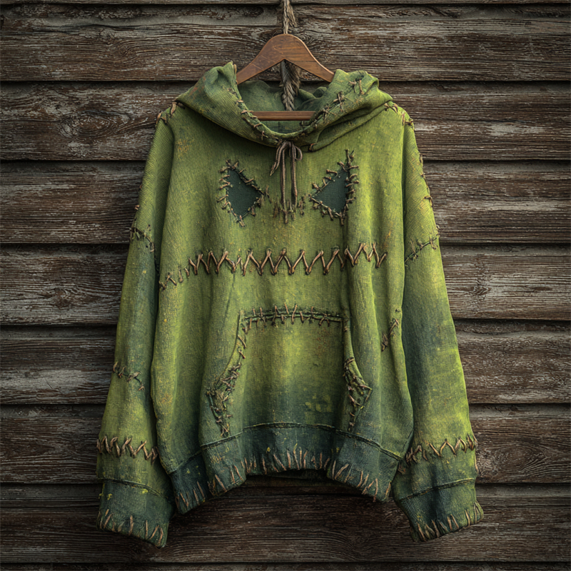 Halloween Stitched Spooky Monster Face Dyed Washed Hoodie