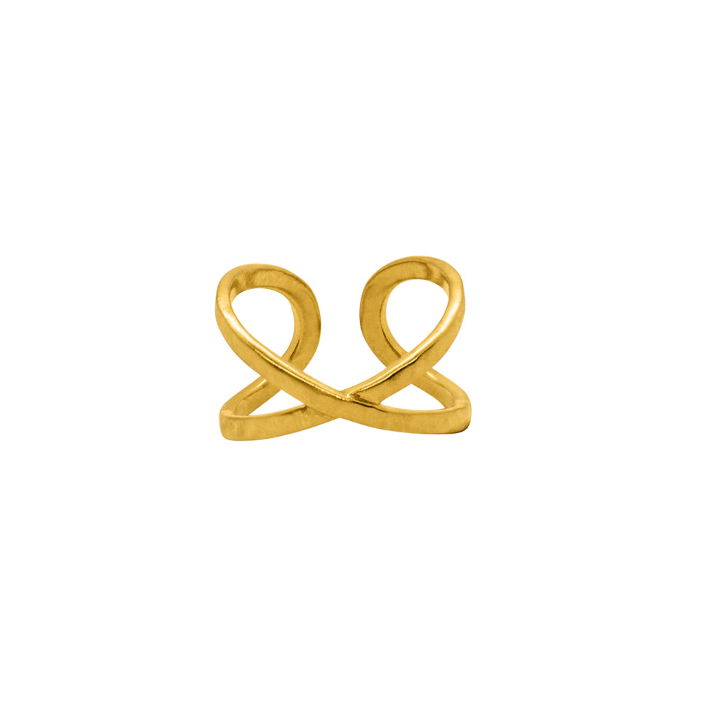 Thoughtfully designed from a single piece of gold plated sterling, the Infinity "X" Ring is hammered to perfection and as flattering as they come. The size adjusts easily to accommodate different fingers/ sizes/ days. This ring is essentially "reversible" & can be worn with the "x" in front or back.