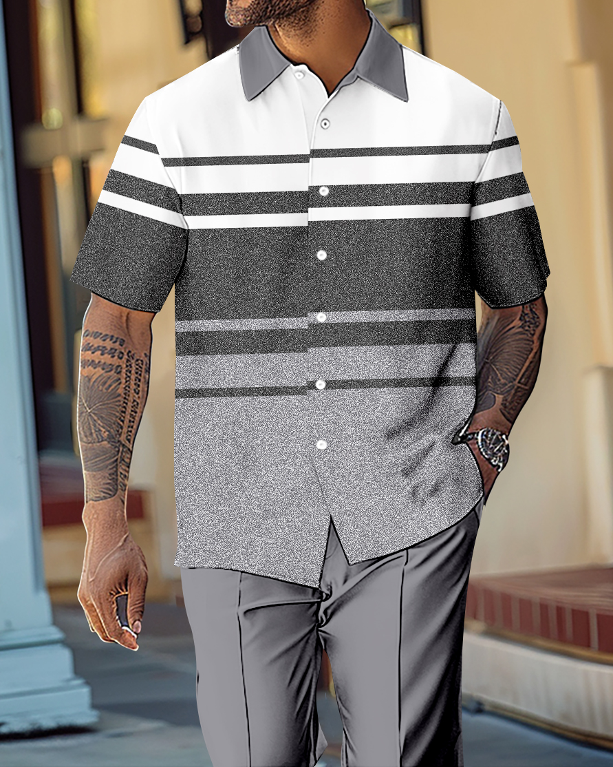 Men's Gradient Color Block Short Sleeve Shirt Walking Suit 1114