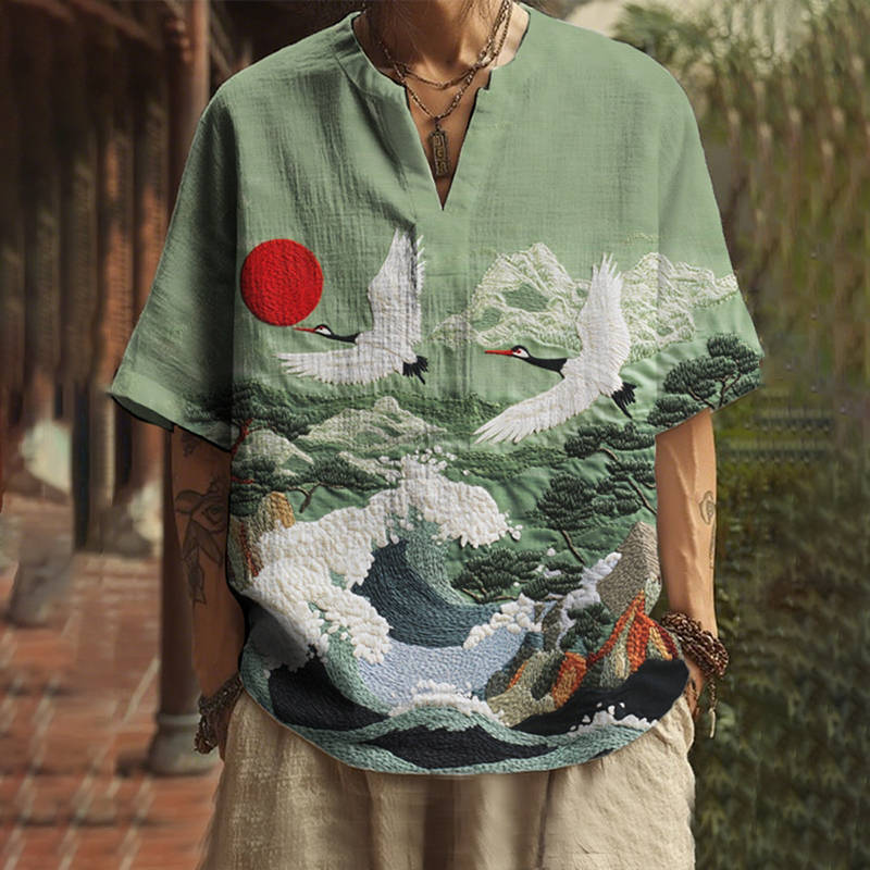 Pattern: Cranes Fly Over The Wave Print