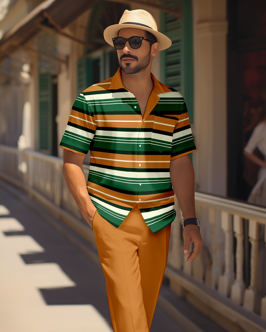 Men's retro colorblock short-sleeved shirt walking Suit 1686