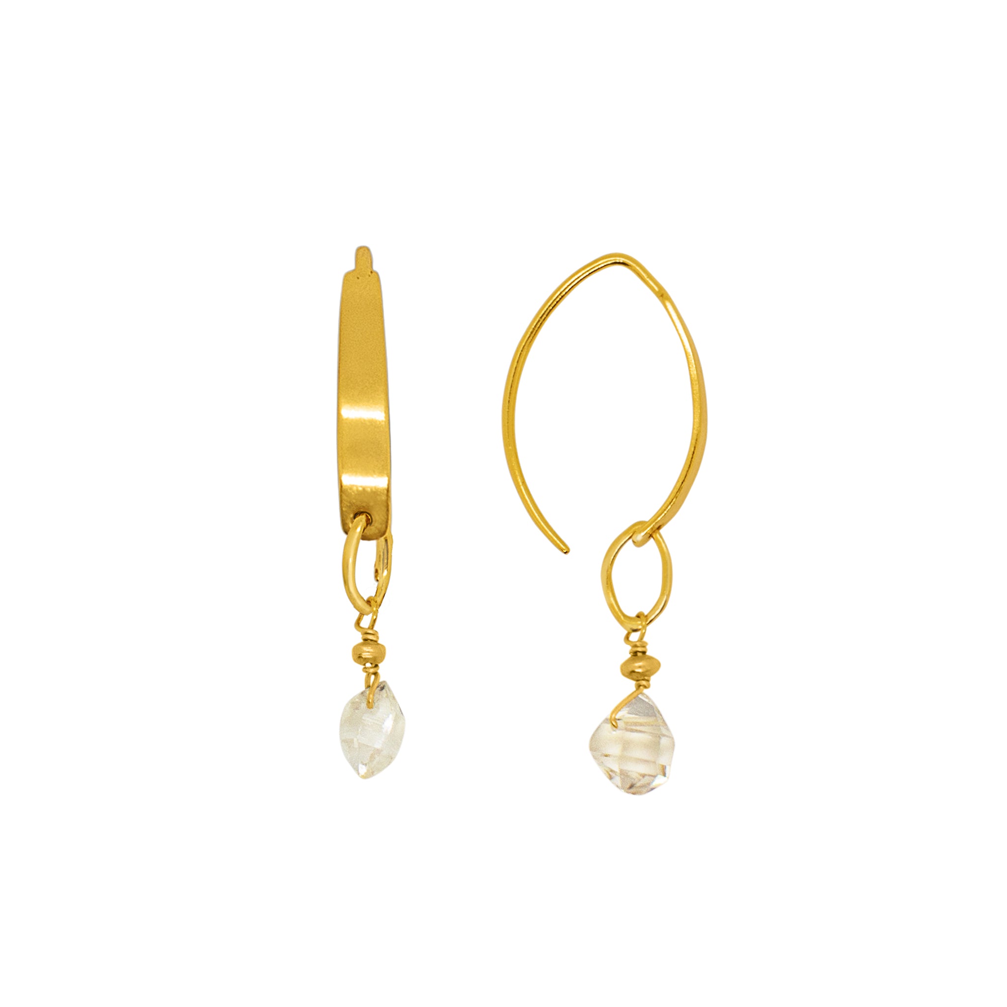 Our Stone Drop Crescent Earrings feature an organically formed Herkimer suspended from a delicate handmade ring. Each pair is full of life and movement.