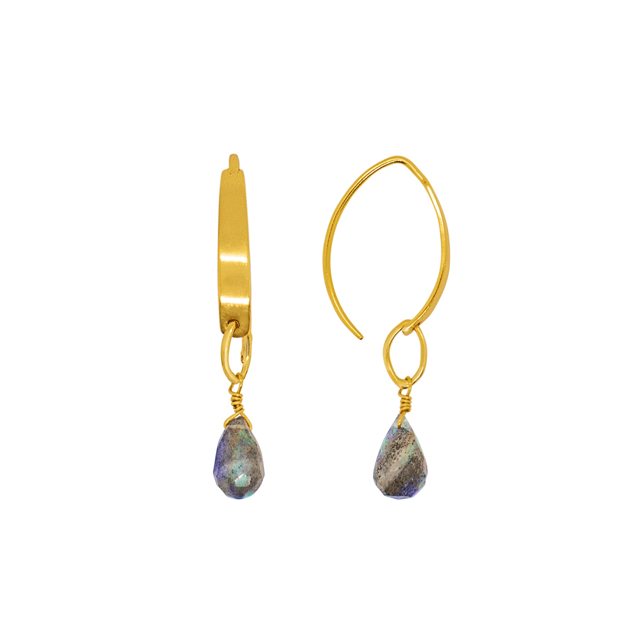 • Labradorite, 24k gold plated sterling.