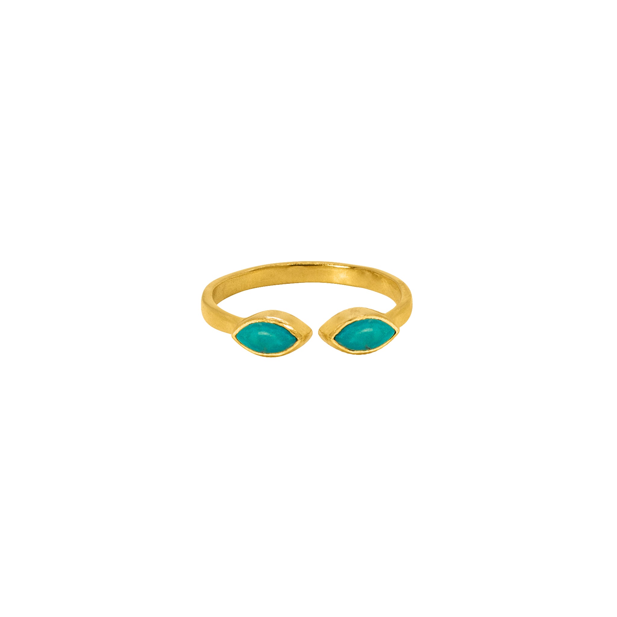 Ultimately wearable and endlessly stackable, The Eyes Have It Stacker Ring in turquoise is the perfect little ring. Each delicate marquis-shaped stone is hand-cut & secured in a deep bezel. These rings adjust from size 6 to 9, so no guessing if you are gifting. Mix, match, create your own stack!