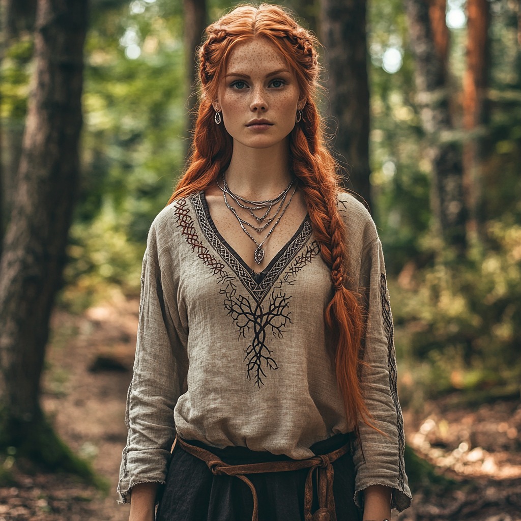 Tribal Viking Life Of Tree Embroidery Art Cotton And Linen V-neck Loose Shirt