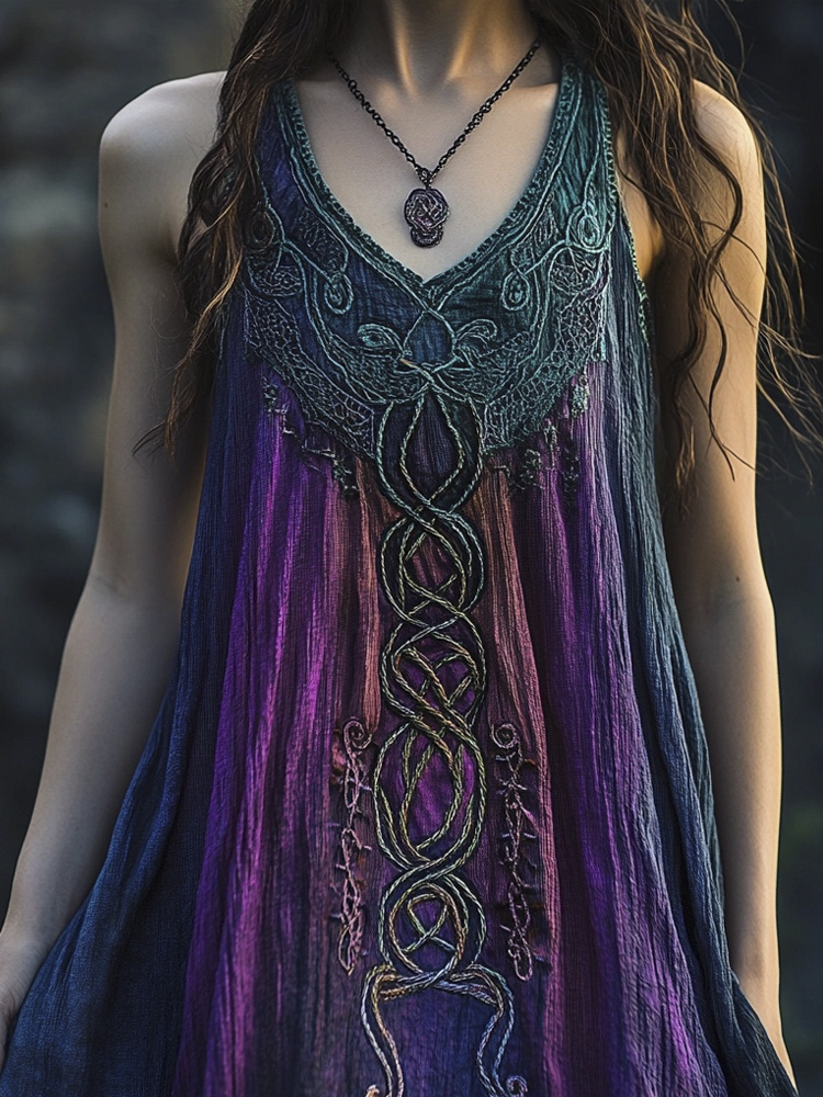 Vintage Celtic Mythology Gradient Lace Linen Tank Dress