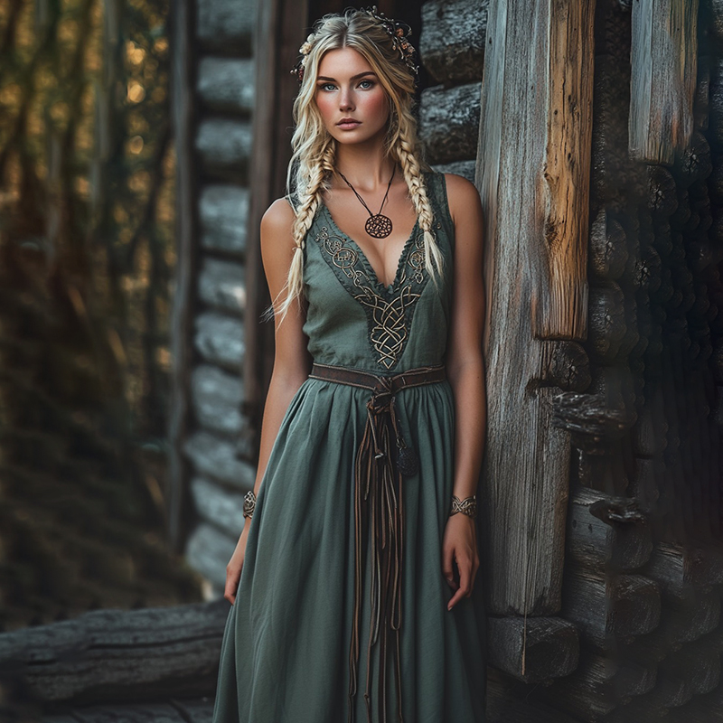 Vintage Viking Celtic Knot Design Linen Maxi Tank Dress