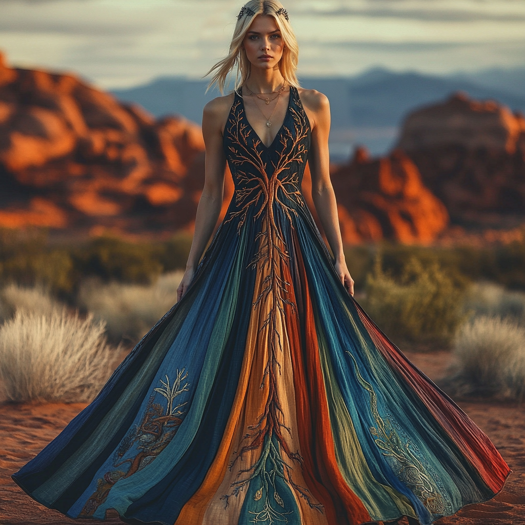 Vintage Viking Tree Of Life Patchwork Art Women's Linen Vest Dress