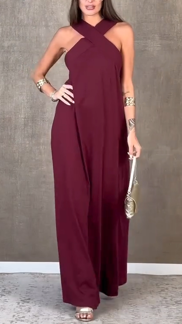 Women Cross Back Hollow Solid Color Casual Dress