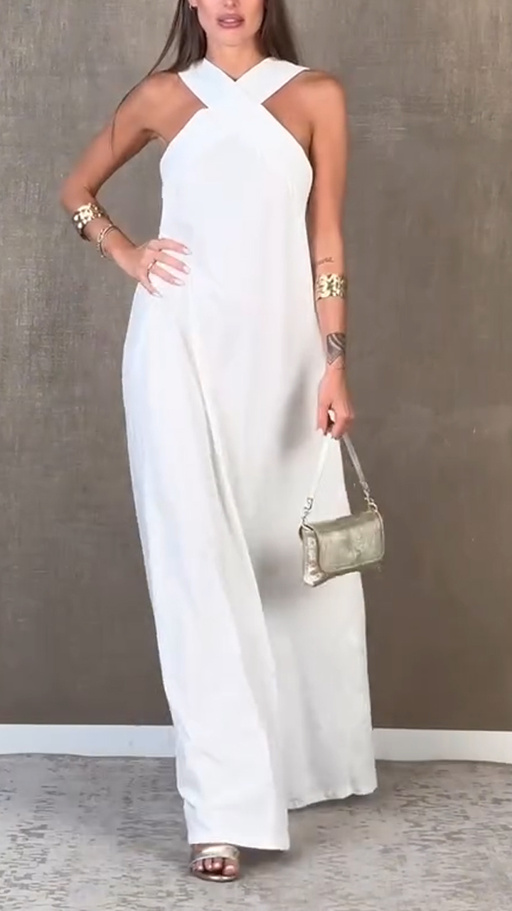 Women Cross Back Hollow Solid Color Casual Dress