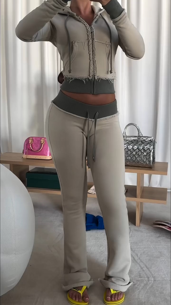 Perfect for weekend hangs, coffee runs, travel days, or effortless street-style moments, this set lets you stay comfy without compromising on style. Pair it with chunky sneakers, slides, or bold flip-flops for a curated, cool-girl aesthetic.