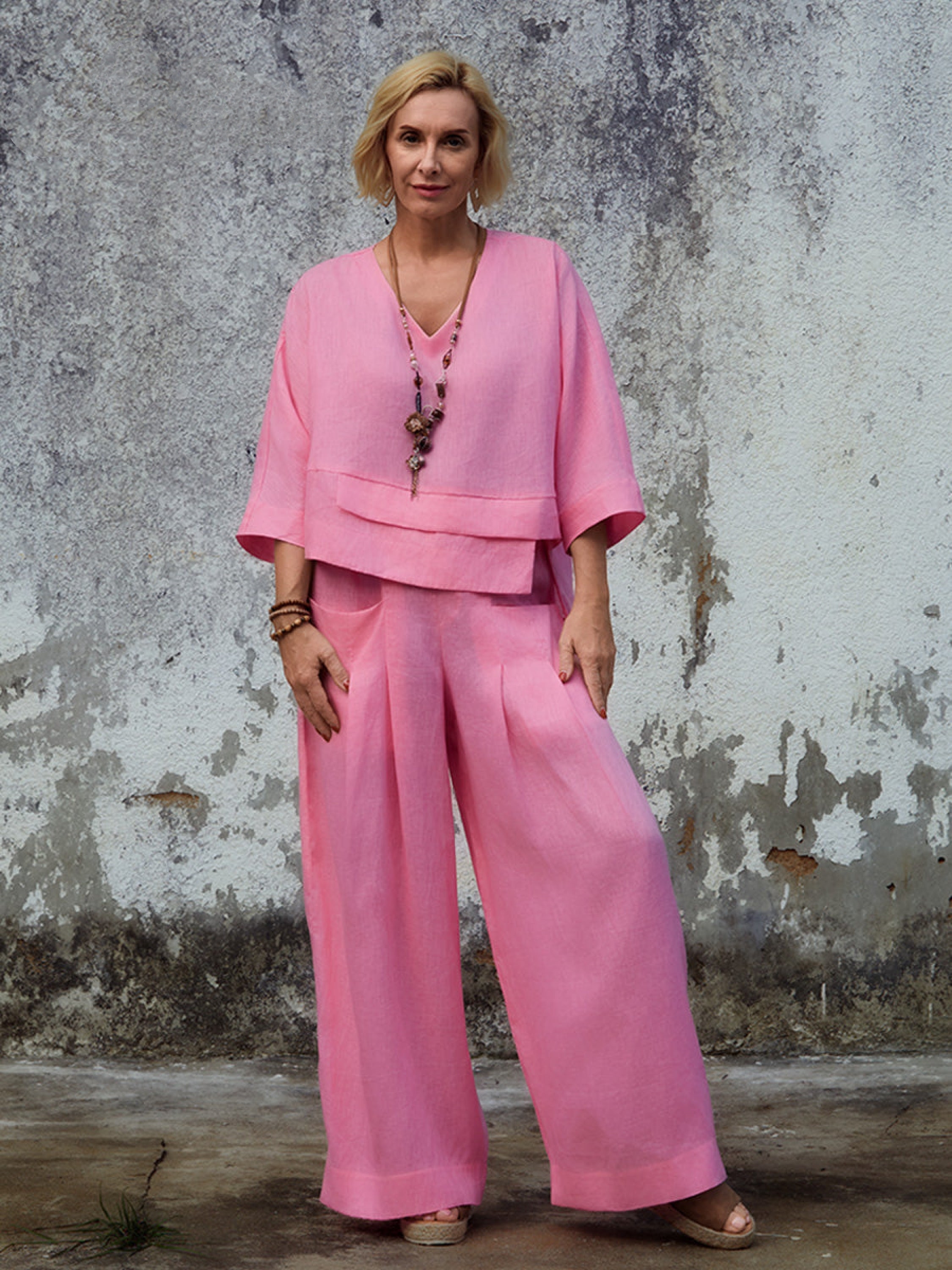 Linen Two-Piece Set – Asymmetric Top & Relaxed Pants